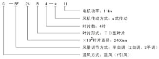 (1)ZF:不停機(jī)自動調(diào)角式(簡稱自調(diào)式)風(fēng)機(jī)。
