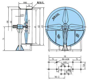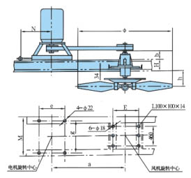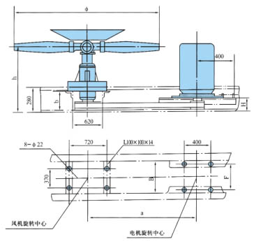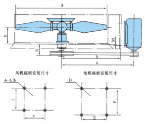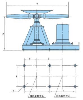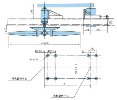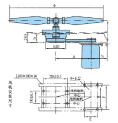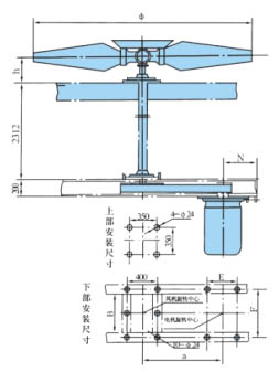 適用直徑1.8-4.5米風(fēng)機(jī),落地式、鼓風(fēng)式,安裝尺寸見表1.